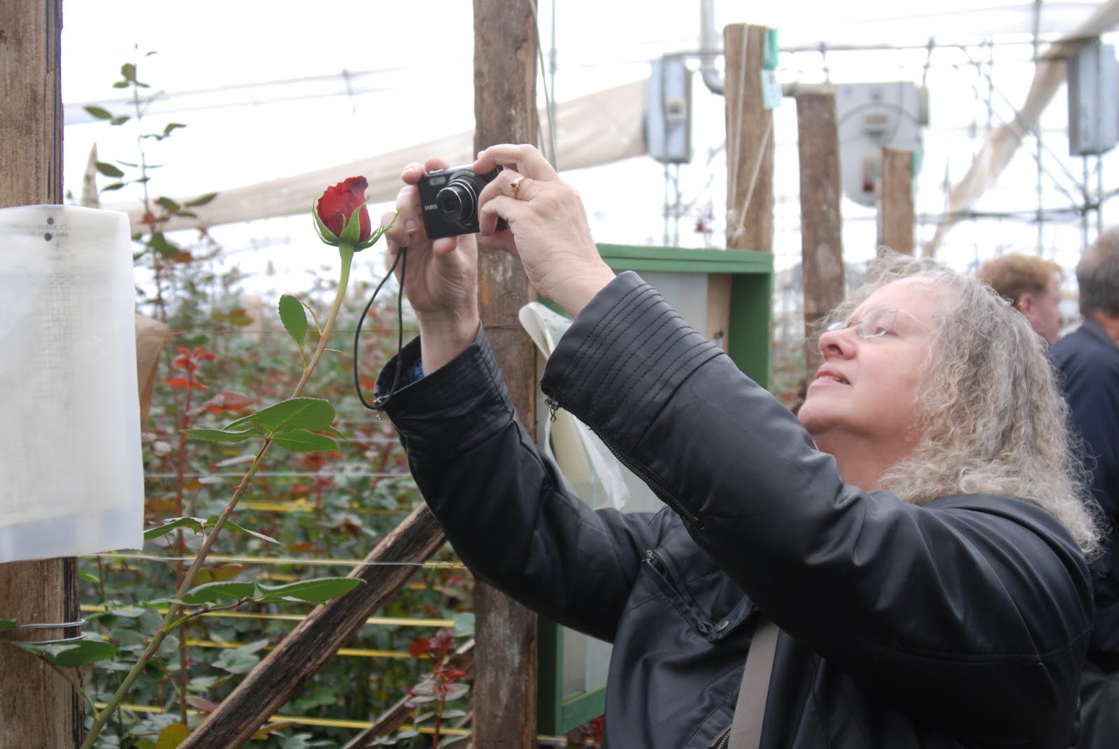 Last Wednesday (8/31) the Cuenca Chamber Of Commerce Ex-Pat group visited the Trebol Rose Plantation. It's about 40 minutes outside Cuenca but at 9500 ft. thus making it about 10-15 degrees cooler. The bus ride for the 20+ ex-pats was an adventure because the last 4 km were all narrow dirt roads and the bus driver had to use all his skills to get us there.